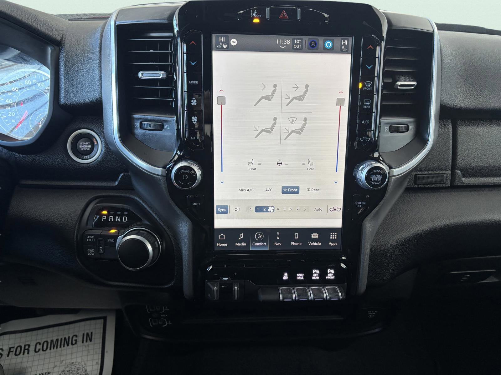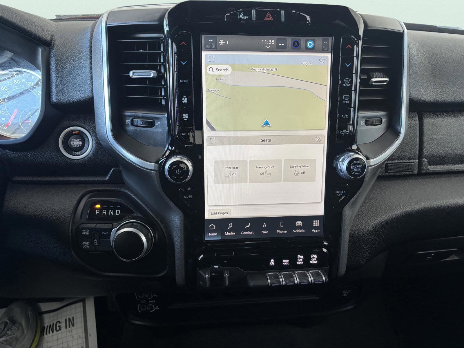- LEVEL 2 EQUIPMENT GROUP -inc: Rear Window Defroster Blind Spot & Cross Path Detection LED Tail Lamps Power Adjustable Pedals Leather Wrapped Steering Wheel Rear Power Sliding Window Rear Dome w/On/Off Switch Lamp Front Fog Lamps Glove Box Lamp Auto Power-Folding Mirrors Footwell Courtesy Lamp Media Hub w/2 Charge Only USBs Heated Front Seats Mirror Running Lights Heated Steering Wheel Foam Bottle Insert (Door Trim Panel) Wheels: 18 x 8.0 Polished Aluminum Dampened Tailgate Security Alarm Big Horn IP Badge Power Adjustable Convex Aux Mirrors Forward & Reverse Utility Lights Locking Lower Glove Box Remote Start System Radio: Uconnect 5 Nav w/12.0 Display Google Android Auto Off-Road Information Pages Selectable Tire Fill Alert Trailer Tow Pages Disassociated Touchscreen Display HD Radio For Details Visit DriveUconnect.com For More Info Call 800-643-2112 12 Touchscreen Display Air Conditioning ATC w/Dual Zone Control GPS Navigation 4G LTE Wi-Fi H